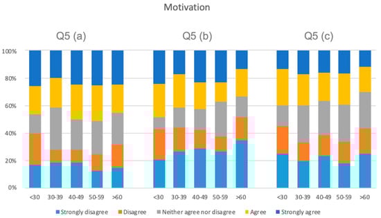 In order to obtain an overview of the results of the previous graphs, Figure 10 proposes a more complete analysis of question 5 from the point of view of the ages of the participants. In this way, the aim is to understand in depth the motivation for a user that others interact with their publications.