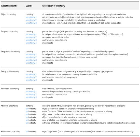 - Windhager, F.; Salisu, S.; Mayr, E. Uncertainty of What for Whom—And Does Anyone Care? Propositions for Cultural Collection Visualization; 2019; under review. [Google Scholar]