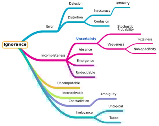 Smithson [] presents a comprehensible one (Figure 3), adapted from []. In this taxonomy, uncertainty appears as a specific kind of incompleteness, but not as an error.