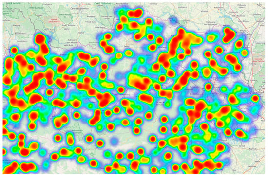 Part of the heatmap of the spatial concentration of collected concepts. Source: the authors.