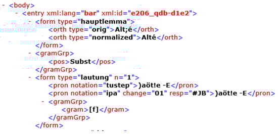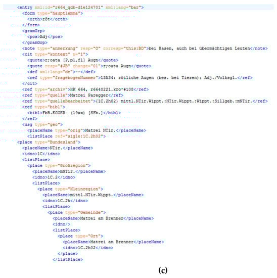- Schopper, D.; Bowers, J.; Wandl-Vogt, E. dboe@TEI: Remodelling a database of dialects into a rich LOD resource. In Proceedings of the Text Encoding Initiative Conference, Lyon, France, 28–31 October 2015. [Google Scholar]
