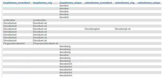 - Wandl-Vogt, E. Wie man ein Jahrhundertprojekt zeitgemäß hält: Datenbankgestützte Dialektlexikografie am Institut für Österreichische Dialekt- und Namenlexika (I DINAMLEX) (mit 10 Abbildungen). In Bausteine zur Wissenschaftsgeschichte von Dialektologie/Germanistischer Sprachwissenschaft im 19. und 20. Jahrhundert. Beiträge zum 2. Kongress der Internationalen Gesellschaft für Dialektologie des Deutschen; Ernst, P., Ed.; Praesens Verlag: Wien, Austria, 2008; pp. 93–112. [Google Scholar]