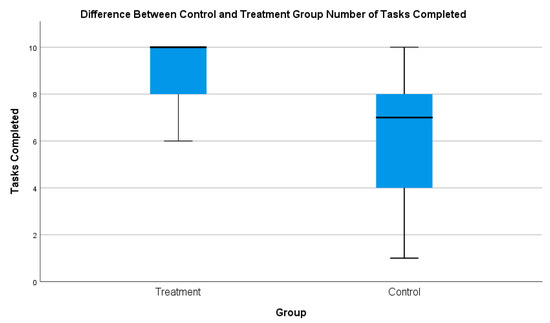 When comparing the results of the two groups using the Mann–Whitney U test, a significant difference was observed. Table 1 presents the overall statistical analysis of the two groups. Overall, the treatment group was able to complete significantly more tasks and, on the tasks they did complete, were significantly more effective than the control group.