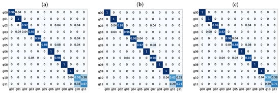 The confusion matrices reveal that the proposed method had, in general, a high level of accuracy. They also show that the “clockwise” and “counterclockwise rotations” were the two most challenging gestures, probably due to their similarity from a spatial point of view (hand pose) and their temporal symmetry.