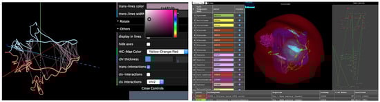 - Djekidel, M.N.; Wang, M.; Zhang, M.Q.; Gao, J. HiC-3DViewer: A new tool to visualize Hi-C data in 3D space. Quant. Biol. 2017, 5, 183–190. [Google Scholar] [CrossRef]