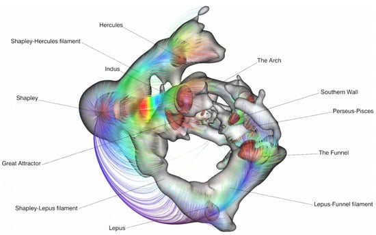 - Pomarède, D.; Courtois, H.M.; Hoffman, Y.; Tully, R.B. Cosmography and data visualization. Publ. Astron. Soc. Pac. 2017, 129, 058002. [Google Scholar]