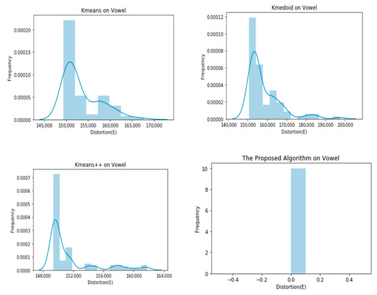 Graphical representation of E obtained by 100 runs of different algorithms on the Vowel dataset.