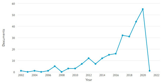 The field of multi-person social interaction is a rapidly expanding research area. The availability of relatively low-cost, high-quality equipment alongside a rapidly evolving set of experimental paradigms has contributed to its growth. In recent years, there has been a push towards recording the neural activity of two or more people simultaneously. This technique has been labelled as hyperscanning [24]. While not entirely new [15], it has now begun to gain ground as a means for studying social interaction [25]. A search on Scopus (https://www.scopus.com/ accessed on 6 November 2020) for the term “hyperscanning” resulted in a total of 246 documents with the term used in them. It is interesting to note that the last decade has seen a significant uptake in social neuroscience research that uses the hyperscanning method, as shown in Figure 1. The year 2020 in particular has seen 55 publications on the subject of hyperscanning.
