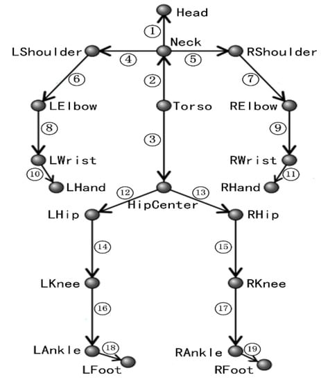 Example of a human skeleton body model with 19 joints.