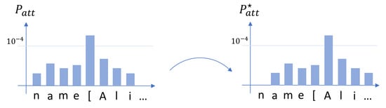 Here, , i.e., the attention distribution shifted one step on the right with respect to the considered input position j. This is done because for the model, it is easier to learn how to center the attention distribution on just a few characters; for instance, the space (‘ ’) and the opening square bracket (‘[’), which appear as word separators in the record strings, are frequently the prefix of a word that has to be copied. Once this is achieved, the attention distribution is translated one step on the right, over the first letter to copy. Figure 2 shows the convenience of this approach.