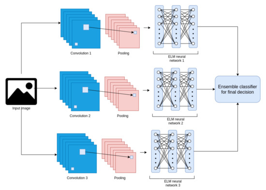 - Kannojia, S.P.; Jaiswal, G. Ensemble of hybrid CNN-ELM model for image classification. In Proceedings of the 2018 5th International Conference on Signal Processing and Integrated Networks (SPIN), Noida, India, 22–23 February 2018; pp. 538–541. [Google Scholar]