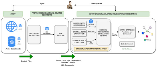 - Preprocessing Criminal-Related Documents, which is formed by the following pipeline modules:
