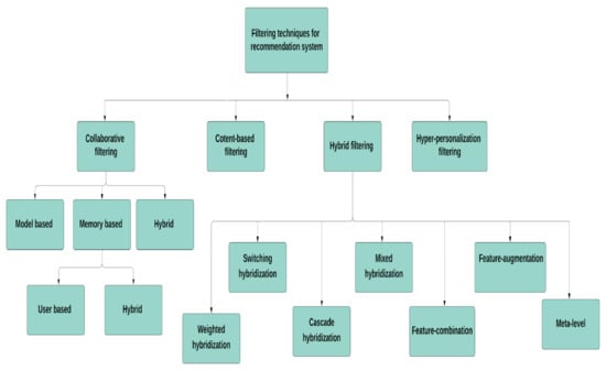 Recommendation system (RS) is referred to as a decision-making approach for users under a multidimensional information environment []. RS has also been defined as an e-commerce tool, which helps consumers search based on knowledge that is related to a consumer’s choices and preferences []. RS also assists in augmenting social processes by using the recommendations of other users when there is no abundant personal information or knowledge of the alternatives []. RS handles the complication of information overload that consumers usually encounter by offering customized service, exclusive content, and personalized recommendations [].