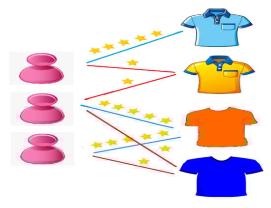 Researchers have frequently used multicriteria decision-based models to develop fashion recommendation systems [,,,,,,,,,]. Adewumi et al. used unified modeling language (UML) to develop a unified framework for outfit recommendations, where users specified the date as an input parameter through a weather API that was afterwards passed through an inference engine, a multicriteria decision making module and hybrid artificial intelligence techniques to provide a suitable recommendation []. Zeng et al. recommended a perception-based recommender system comprised of two distinct models, where these two models worked together to provide recommendations by characterizing human body measurements and their perceptions of different body shapes [].