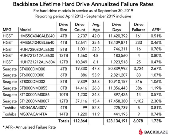 Backblaze statistics in September 2019.