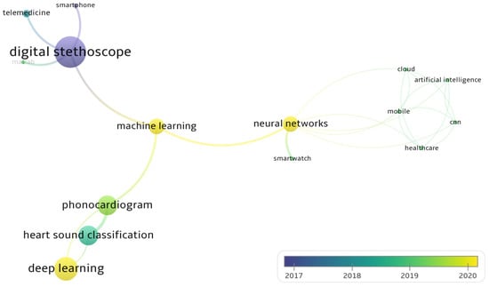 https://physionet.org/ (accessed on 29 October 2021)) for model training and obtained an accuracy rate greater than 90%. The model proposed by the authors uses the digital stethoscope architecture with a bluetooth connection by beacons to the server with cloud access, with CNN for diagnosis. The authors classified the solution without the need for complex hybrid models for use in a hospital or clinical environment.