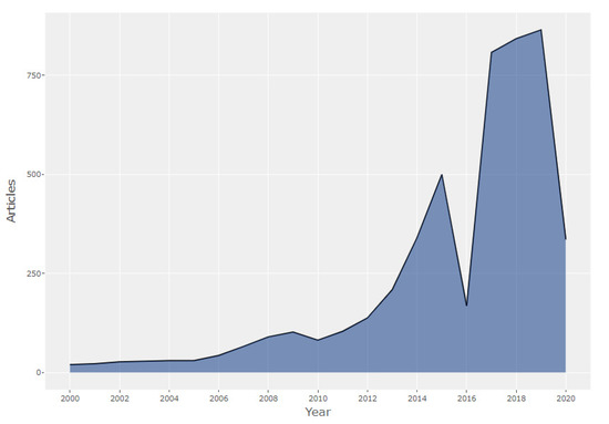 This research is exploratory in nature, based on scientific articles available online. However, to add knowledge and relevance to the documentary analysis, it was complemented with bibliometric analysis with papers dated from 2000 to the present day. Bibliometrics is a type of research method where quantitative and statistical analyses are used to describe the patterns of publications in a particular field [36]. This method introduces quantitative rigor into the subjective evaluation of literature and is able to provide evidence of theory-derived categories of a review article [46].