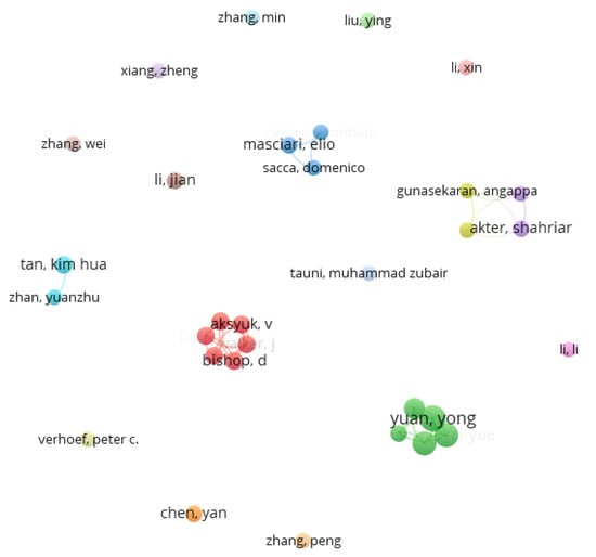 According to [71], co-authorship networks mostly give emphasis to understand patterns of scientific collaborations, to capture collaborative statistics, and to propose valid and reliable measures for identifying prominent author(s). Figure 3 and Figure 4 present the co-authorship network by authors.