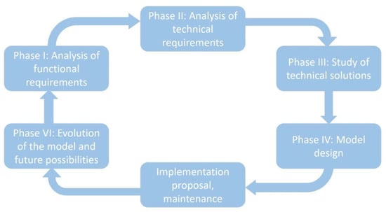 - Phase IV: Model design.An integration platform model that covers the functional and technical requirements defined was proposed, using the technical solutions analyzed in phase III.