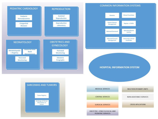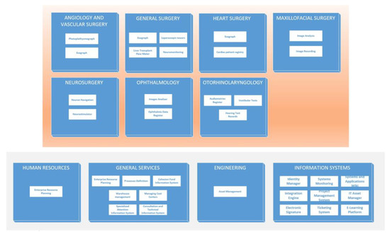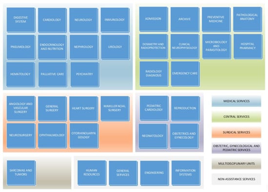 We proceeded to narrow down the functional scope of the system. For this purpose, the organization of services, units and sections of the largest hospitals in the country was taken as a reference, considering the number of beds in each center as a criterion for size.