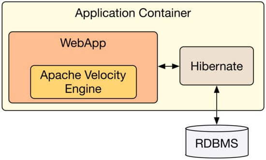 The web application is founded on a three-tier architecture whose data layer includes a relational DB, which, in turn, uses an Hibernate engine for ensuring data persistence. The web app requires an application container to be deployed on, and its implementation has been based on the MVC pattern. In order to clearly separate the implementation of the view and the model, the web app implementation makes use of the Java-based template engine Apache Velocity. It should be underlined that to ensure the highest degree of flexibility, the model-to-text transformations used for generating the application code and the related scripts do not hard-code any reference to a specific database or container. An appropriate configuration allows for the actual specification of the needed technology.