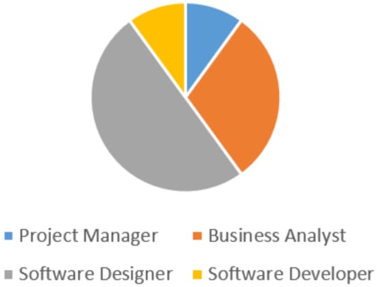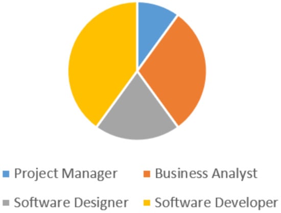 Specifically, regarding the above-mentioned application scenarios where the E-MDAV methodology has been applied, Table 1 outlines the roles and their main responsibilities, whereas Figure 12 shows the related effort distribution. The effort distribution refers to the example scenario dealing with a web application for tax management implementation. Data have been retrieved from the company’s accounting system, which reports the number of hours spent daily by each team member, according to the professional role and the activities carried out.
