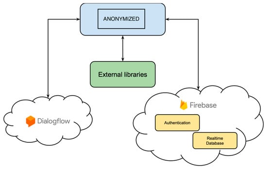 Today, there are many development platforms and implementation options (e.g., via Software as a Service (SaaS)) on the internet that allow the building of a personalized chatbot with many different features, which can be integrated into various platforms []. There are several messaging platforms—Messenger, Telegram, Viber, Kik or Slack—that allow the integration of chatbot agents. However, the main goal of this project was to develop an Android app that could receive usage data from the smartphone and trigger messages through a chatbot agent.