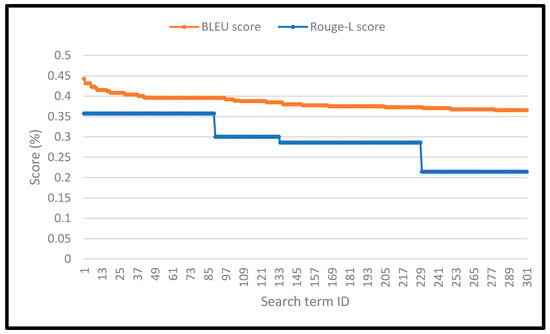 The third and fourth metrics focus on the quality of the explanation itself. We use bilingual evaluation understudy (BLEU) [] and Rouge-L [] scores to calculate how much a generated explanation represents the explained result. BLEU score measures the closeness between a machine-generated text and the original human-defined one. We use this score to measure how a generated textual explanation represents the original information that the KG paths have provided to the explainability algorithm. Rouge-L score measures the ability of a machine generated text to summarize the original information. In our case, this score represents the ability of the explanation to summarize the information that led to retrieving a certain result from the KG structure.