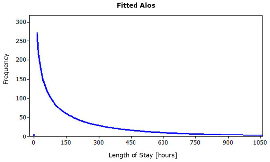 Further processing identified the statistical distribution of ALOS. The latter shows an exponential hourly trend of an average 242.85 h (Figure 5).