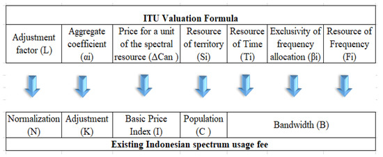 - Ismail, I.; Supangkat, S.H.; Hendrawan, H.; Iskandar, B.Y. Refining Spectrum Fee to Increase Utilization Efficiency by Adopting ITU-R SM 2012-2 Case Study: Cellular Service in Indonesia. ITB J. Inf. Commun. Technol. 2011, 4, 1–22. [Google Scholar] [CrossRef][Green Version]