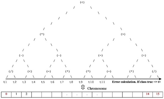 Accuracy calculation follows the process of every instance of the dataset, and it settles on the terminals of each BDT. The BDT consists of predicates and arithmetic symbols that make the calculations. The BDT reads the index of every instance, and it generates a number: the classification accuracy. The classification accuracy indicates the algorithm’s ability to predict the actual class of the subset or chromosome. There are occasions where a chromosome or instance may also belong in more than one class. After classifying all the available selected subsets or instances, each subset is assigned a value. These values refer to true positive if the instance is correctly classified from the BDT, which finally takes a vote. The performance of the best classification BDT that has contributed the most to the classification process is that with the biggest number of votes.