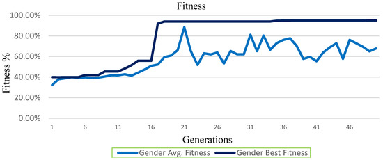 - Gender classification problem solved at the highest rate of Training Fitness = 95.00%, Validation Fitness = 95.30%, Testing Fitness = 92.50% (Table 2);