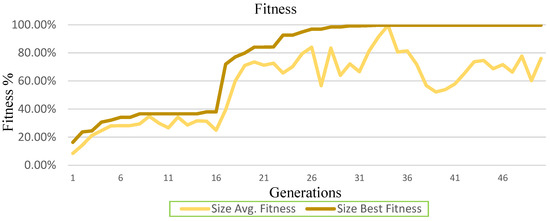 The variable that decides if a gene is going to be changed is the gene probability (gene_prob). The value of the gene_prob is set to 0.3. If the generator produces a smaller number, then the specific gene will be evolved. There is a variable that decides if the genes of the first two selected as the best chromosomes will be mutated or crossover-ed. This variable is the operator probability (operator_prob) that randomly generates numbers. If the generated number is less than <0.4, then the procedure of the mutation or crossover will take place. The possibility of a crossover taking place is 40% and the probability of mutation is 60%. Out of these two chromosomes, the best is chosen and stored in an array. When the array is filled with 100 evolved or not evolved chromosomes, the second generation is created. The next generations are created in the same way as the second. The generation variable defines the number of the generations, and the population variable can also take different values by the user and defines the size of the population of the chromosomes of each generation. The operator_prob and the gene_prob can change by the user (Figure 3) [21].