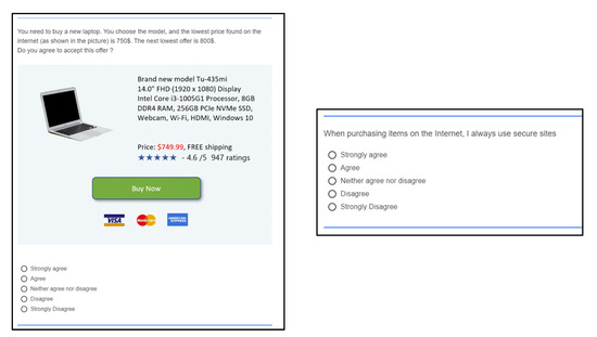 - Using secure web sites when purchasing goods with an e-commerce transaction. A screenshot depicting this scenario was shown to the participants.