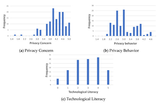 To conduct the empirical study, we developed a questionnaire designed to collect information from an individual on the three major factors: privacy concerns (), privacy behavior (), and technological literacy (). The empirical study paired privacy concerns and privacy behavior in seven scenarios: