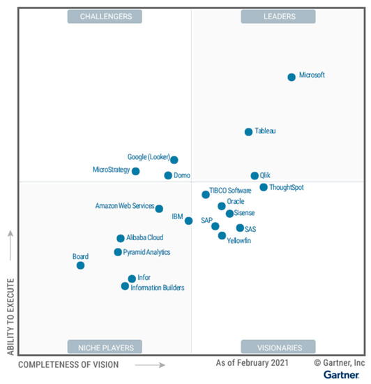 - Scott, T. Power BI vs Tableau: A Data Analytics Duel; TechnologyAdvice: Nashville, TN, USA, 14 September 2019. [Google Scholar]