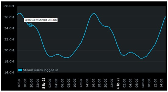 The number of Steam users—data on 5–6 July 2022 [accessed: 6 July 2022, 3:44 p.m. (GMT+2:00) Warsaw], source of Figure: [35].