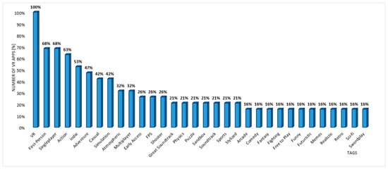 The number of a given tag of all tags for 19 top-rated VR applications on Steam (author’s own study based on data from [35]) [state on 6 July 2022].