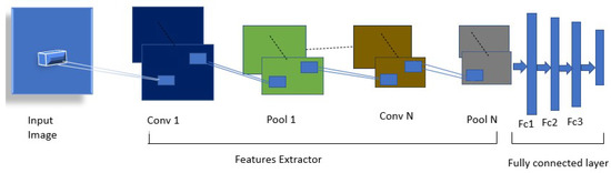 Convolutional neural networks (CNNs) have recently become the best performing neural networks for image analyses and classification. The BoDMCF approach utilizes pre-trained, state-of-the-art CNN models for feature extraction. This section provides a summary of some of the technical details of the CNN architecture. CNNs are in the category of feedforward neural network (FFN) models, where the signal passes within the network without a loop back and can be expressed in Equation (1) [50].
