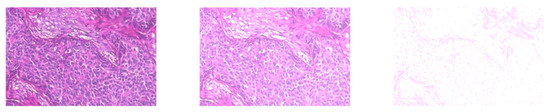 During this step, each histopathological image is resized to fit into an input size suitable for different deep CNN models. The histopathological images were resized from 2048 × 1536 to 299 × 299 for inception-v3 and EfficientNet-B0 and to 224 × 224 for resnet-50. Random color data augmentation was also performed on each image by changing the brightness of the image randomly between 50% () and 150% () of the original image. (See Figure 7) Data augmentation generates diverse samples, which enables the model to learn a robust representation that is invariant to minor changes [56]. Examples of resized histopathological images are shown in Figure 8. After pre-processing, training and test sets were created using a 70:30 split ratio.