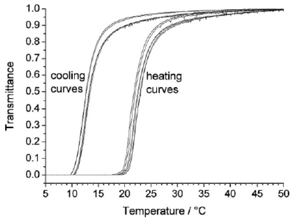 Hysteresis as observed by light transmittance characteristic of many Am-AA based hydrogels [30].