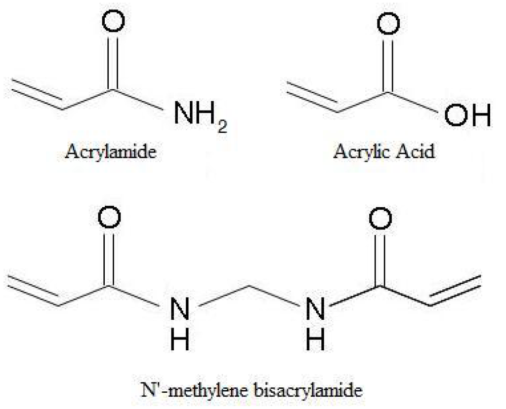 There are common methods and recipes for synthesis of Am-AA based hydrogels. N'-methylene bisacrylamide is a double functional amide monomer that is frequently used as a crosslinking agent for these gels due to its similar structure (Figure 6).