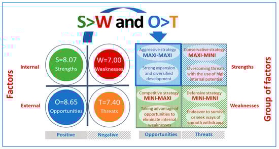The inspiration for the development of methodological assumptions during the creation of this matrix (Figure 2) were the portfolio methods commonly known in management sciences, allowing for a graphic presentation of the comparative analysis, the results of which are based on two criteria/factors placed on the horizontal (x) and vertical (y) axis of the matrix.