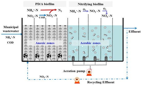Schematic diagram of the PD/A anoxic/oxic biofilm reactor.