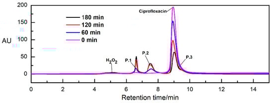 The samples were treated at standard atmospheric pressure and under light protection. The concentration of ciprofloxacin in the reaction solution was analyzed by HPLC at intervals of 30 min.