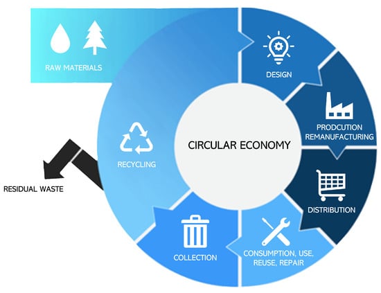 Life-cycle assessment is a technique used to assess the environmental impacts associated with all stages of a product’s life, from the extraction of raw material to its processing, manufacturing, distribution and use [4]. Through the combination of life-cycle assessment with MOO, it is possible not only to evaluate the environmental impact for a given process or product, but also to assess the economic perspective, which allows different alternatives for decision-making to be compared [5,6,7,8]. An example of the above can be found in studies on circular economy (Figure 3), which aims to convert the value chain from linear to circling and increase the efficiency of resource utilization [9]. In this work, the authors studied the reuse of an organic waste (fish oil), which is usually discarded due to the lack of process recovery, and integrated to the LCA with the economic evaluation. The authors found that the solutions with the highest profit (USD 470,084 per year) also represented an increment of 19.5% in the LCA score with respect to the configuration with the lowest impact, as well as reducing the shared revenue (social indicator) with respect to the best scenario. This result is typical of MOO problems in which the defined objectives are in conflict. However, the Pareto fronts give the decision maker a tool to define the priorities and select the best scenario.