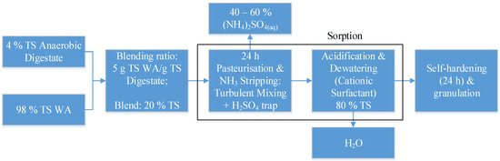 The anaerobic digestates, animal manures, and slurries are appreciated by the farmers as organic soil amendments. Improving the nutrient profile of the digestate might be a way of increasing its value and decreasing the cost of transportation. Moreover, there are more urgent challenges that need to be addressed, such as the pollution associated with the use of these materials [10]. It is necessary to optimize the conditions of the WA-based treatment of the anaerobic digestate to improve the stability of the soil organic amendment, improve the nutrient use efficiency, and reduce the contamination of the environment. The objectives of this review are (a) to discuss the underlying chemistry of the blends of anaerobic digestates and WA, and (b) to design a process that only requires affordable and widely available resources to prepare the novel fertilizer.