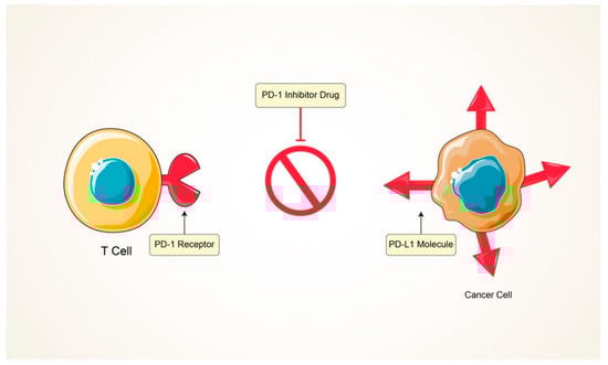 Cancer is the major increasing curse for the human population throughout the world and is the second leading cause of death after cardiovascular disease. Thus, researchers are trying to ascertain safe and efficient therapies for cancer treatment, among them, “immunotherapy” (i.e., enhancing the immunity of the body to fight against cancer) is the foremost therapeutic approach []. Basically, it provides much potential and is a more stable treatment strategy than other traditional cancer treatments. During the last decades, this cutting age approach has provided a significant response against cancer []. In immunotherapy techniques, T cells, NK cells and dendritic cells are directly involved to fight against the rapidly proliferating cancer cells, but they need modification to work effectively against cancer cells []. Immune checkpoint inhibitors have been shown to have exceptional effectiveness against a wide spectrum of solid and hematological malignancies by restoring malfunctioning or exhausted T cells [,].
