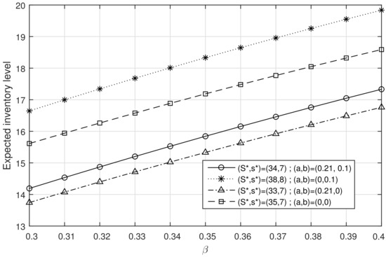 This case explores the expected number of existing pen drives, its re-order rate, the number of customers in orbit, and the total and successful rate of retrial. With respect to purely SD (or NSD) and partially SD classifications. The increase in shows that the average time between two consecutive reorders has decreased. Figure 4 demonstrates that the expected number of current stock levels has increased if the lead time decreased. The owner of the pen-drive store will have more products in the storage system (if is increased). That is, the shop’s displayed stock level has been increased. When individuals look at the objects on showcase, they may be tempted to them. They become customers and begin purchasing the displayed things if they are intrigued with them. The information concerning about expected reorder rate is shown in Figure 5 which demonstrates that the re-order intensity rate is always proportional to its expected rate. As a result, as shown in Figure 5, the merchant ensures that the appropriate steps are followed to obtain a prompt replacement. Figure 6, Figure 7 and Figure 8 show the results as the lead time is inversely proportional to the number of customers in the orbit, the expected total, and the success rate of retrial customers, respectively. As previously stated, if Q products are restocked quickly (i.e., if is increased), the shop’s displayed stock level is likewise boosted. The boosting of the current stock level indicates the estimated number of consumers in orbit, the expected total retrial rate, and the expected successful retrial rate respectively. In the same way, the vacation will soon come to an end. As illustrated in Figure 9, Figure 10, Figure 11, Figure 12 and Figure 13 when the parameter is increased, current stock level, expected reorder rate, average customer in the orbit, and their total and successful rate of retrial decrease. That means, if the pen-drive store owner spends as much time as possible on vacation, the measured metrics of the store’s performance will be impacted, as we predicted. This will assist them in deciding whether to lengthen or shorten their vacation time based on their preferences.