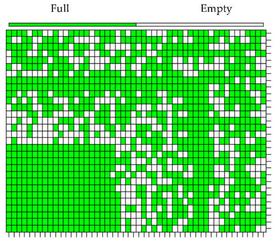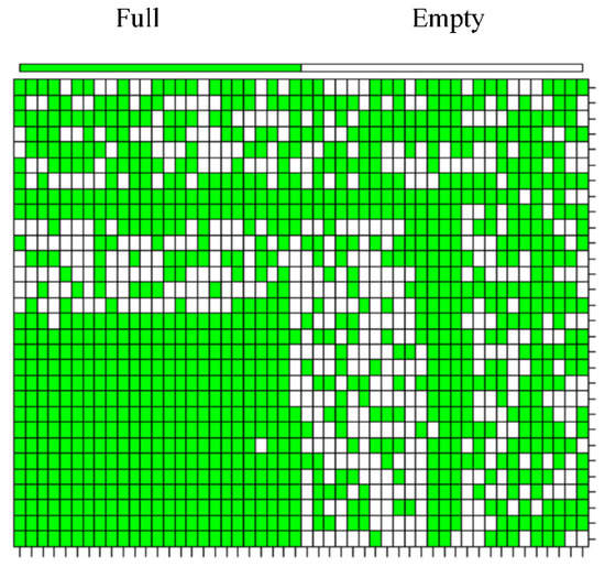 To find possible new locations for step 2 for the needed loads, some conditions must hold. For example, the movement should be for an empty cell with a lower cell number (with shorter service time) by at least ANCST. Some cells are excluded to keep some empty spaces for the storage orders. The number of empty spaces was found using trial and error. Future research can find the optimal number of empty spaces and their locations. In this paper, any cell with a number divisible by 4 was excluded.